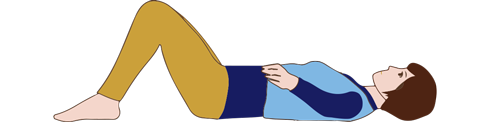- 1,仰向けに寝て、ひざを折り曲げて立て、お腹に手を当てます。