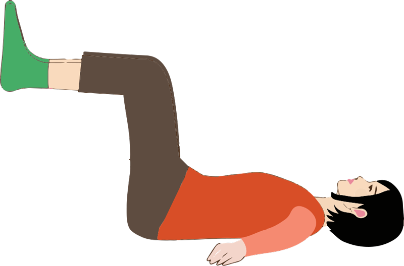 - 1,仰向けに寝て、片ひざを折り曲げて立てます。