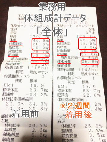 つける前(左)、つけて2週間後の「インボディデータ」です。